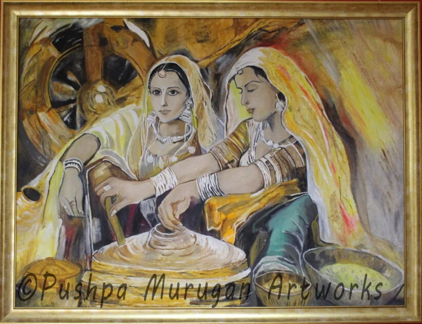 Pushpa mainly works with Acrylic, Oils and Graphite. She also explores watercolors and Printmaking frequently.