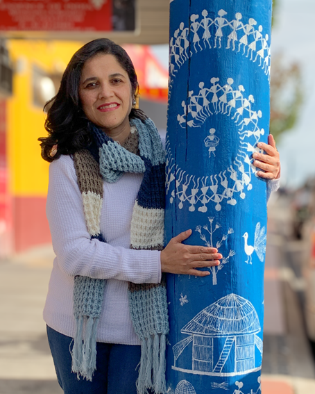 Rashmi Gore is a multidisciplinary creative based in Melbourne—an artist, architect, poet and energy healer who weaves together the visual and the spiritual through her work. She likes to experiment, upcycle, integrate and create Fusion works using her knowledge of Indian indigenous art forms with contemporary subjects in mediums. She calls this style MELBANI (derived from the fusion of Melbourne & Madhubani) She is well versed in the indigenous art forms of Gond, Warli, Madhubani,Phad, Lippan art is formally trained under National award-winning indigenous artists from India.